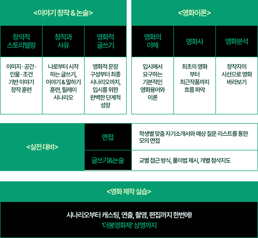 주요 영화과 실기, 논술, 면접 종합 대비 클래스